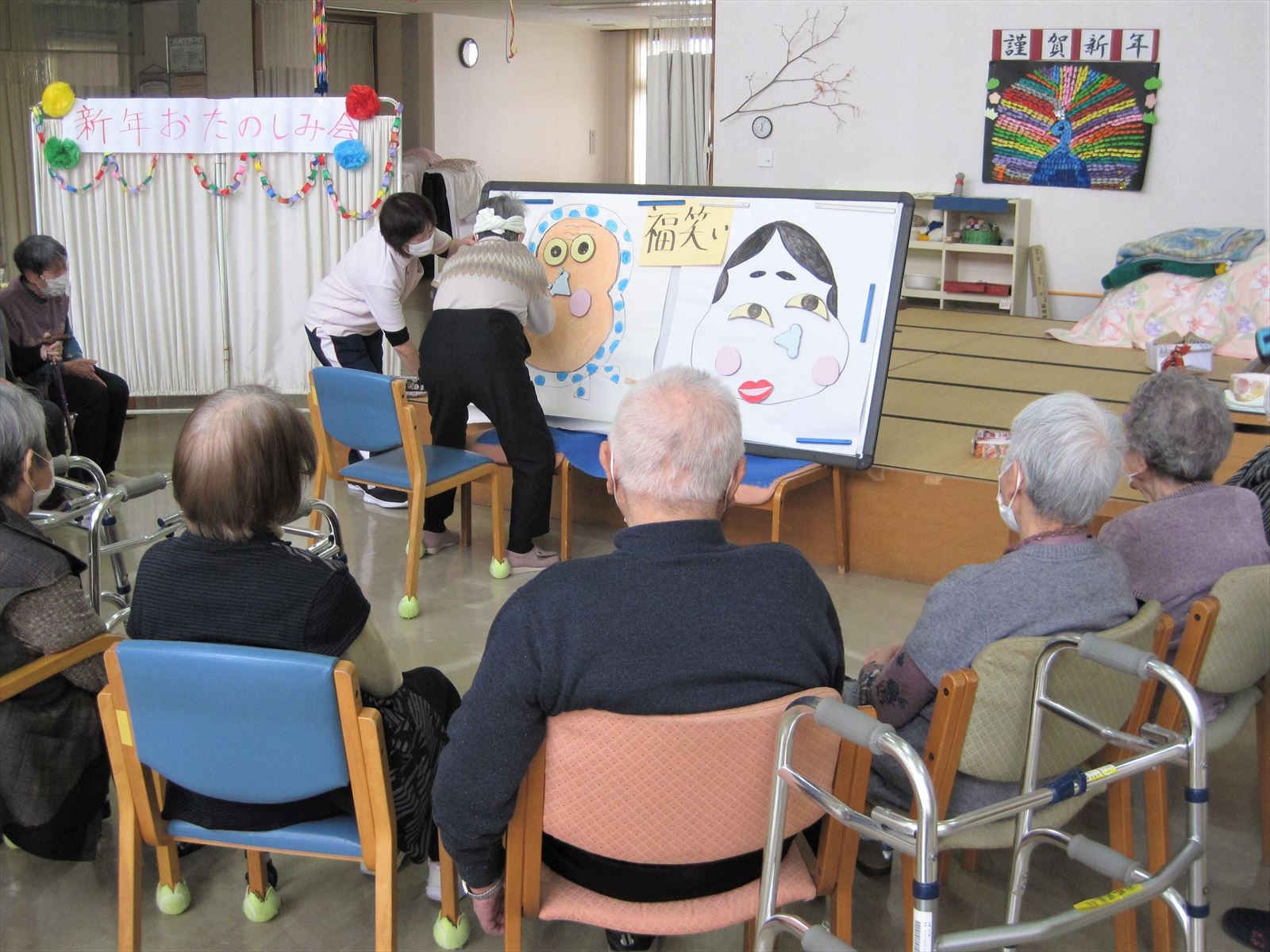新年お楽しみ会を行いました。 2023年1月27日 最終更新日時 : 2023年1月27日 user_01 新しい年を迎え、ケアハウスわらび園とデイサービスセンターにて 「新年お楽しみ会」を行いました。 初めに、園長から新年の挨拶がありました。 ケアハウスわらび園では、お汁粉の振る舞いがあり、 皆様 美味しそうに召し上がって頂きました。 デイサービスセンターでは、福笑いをしました。 皆様、とても盛り上がり、楽しんで頂きました。 今年も、わらび園内の様子を掲載いたしますので、 ぜひご覧下さい。 皆様にとって良き年になりますようお祈り申し上げます。