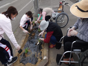 来迎寺駅前通りの花壇の花植えに参加をしました。