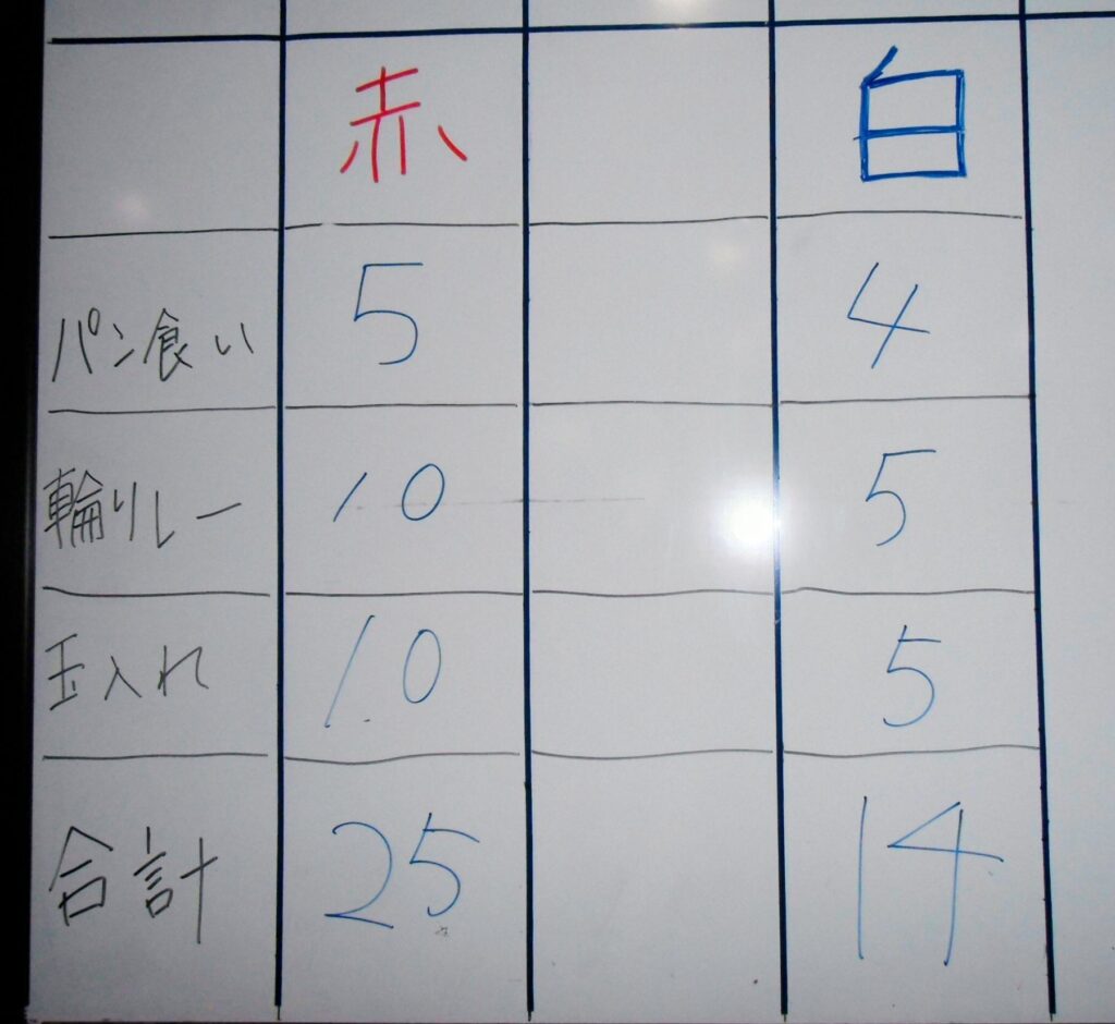 赤組、白組に分かれて、「パン食い競争」「足で輪リレー」「玉入れ」を行いました。