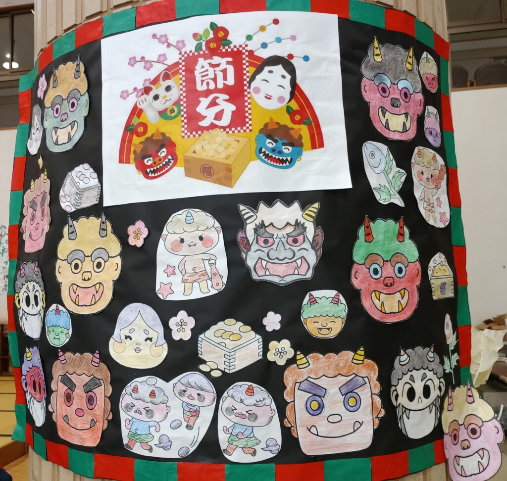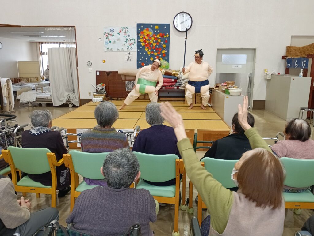 職員が扮する、「馬ノ千代」と「琴之平」による節分場所を開催しました。