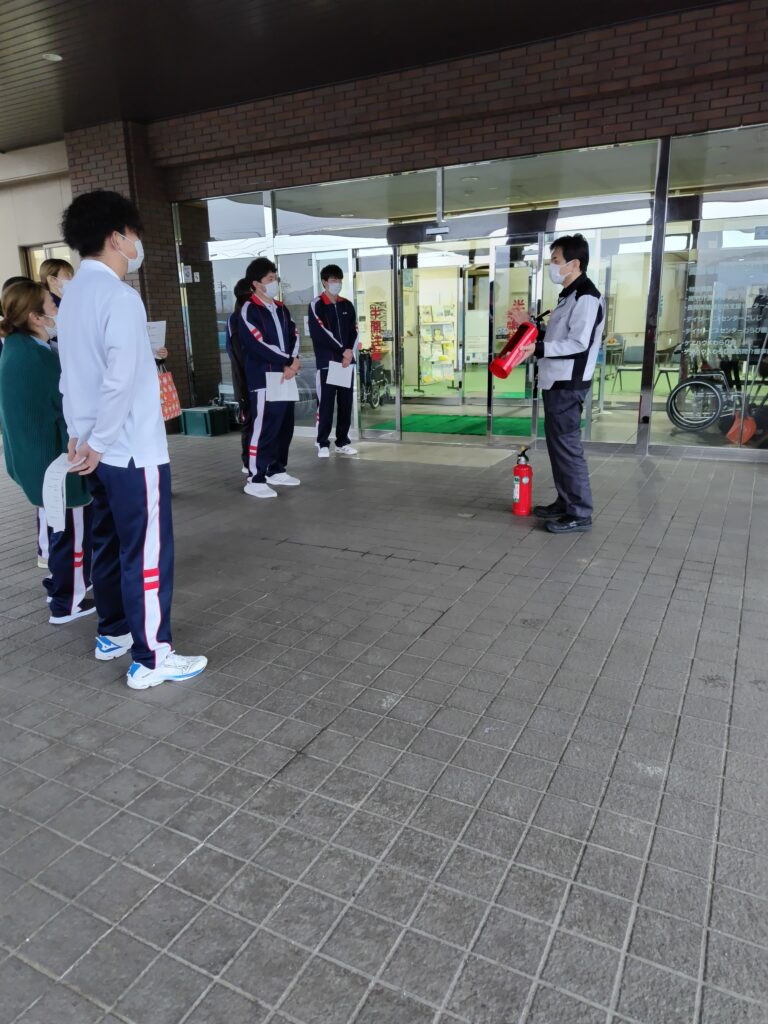 その後、新採用職員に対して、各部門長より研修が行われました。最後には消火器を実際に噴霧する訓練も行いました。